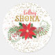 Sticker Rond Nollaig Shona Parties scintillant d'or Poinsettia