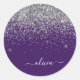 Sticker Rond Nom de monogramme girly pailleté violet argenté