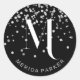 Cet autocollant classique a un arrière - plan de parties scintillant argent glam et une typographie blanche élégante avec un nom personnalisable monogramme initial sur un arrière - plan noir. Parfait pour décorer un cadeau dans un glamour, élégant et réfléchi pour une occasion spéciale comme Noël, le Nouvel An ou un anniversaire | cadeau d'anniversaire.