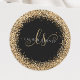 Sticker rond Monogram Parties scintillant Or Glam. Personnalisez facilement ce design chic et rond autocollant élégant avec une élégante parties scintillant dorée brillante sur un arrière - plan noir. Le design comprend votre monogramme manuscrit avec de jolis tourbillons et votre nom.