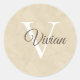 Sticker Rond Nom du monogramme de l'aquarelle beige simple
