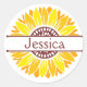 Sticker Rond Nom du monogramme de tournesol frisé jaune joyeux