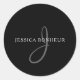 Sticker Rond Nom élégant Monogramme | Blanc et gris