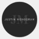Sticker Rond Nom et monogramme modernes | Gris et noir