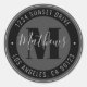 Sticker Rond Nom et texte circulaire monogrammes | Gris et noir