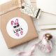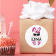 Sticker Rond Nom Personnalisé Cute Lapin Rose Avec Lunettes De