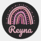 Sticker Rond Nom Personnalisé Drôle Femmes Rose Arc-en-ciel Rey