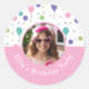 Sticker Rond Nom photo personnalisé Balloon Confetti fête d'ann