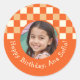 Sticker Rond Nom photo personnalisé Plaid En vichy fête d'anniv