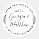 Sticker Rond Noms de script Feuilles simples Merci Mariage rond
