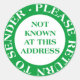 Un outil non connu / retour à l'autocollant de l'expéditeur. Conçu pour attirer l'oeil (vous voulez que le facteur le remarque) Clair et facile à lire, en utilisant une police claire et élégante qui rend le message clair. Malheureusement, le vol d'identité et l'utilisation frauduleuse d'adresses résidentielles pour obtenir du crédit sont assez fréquents ces jours-ci, ce qui signifie qu'il est important de retourner tous les courriels mal adressés avant que les choses ne deviennent incontrôlables.