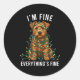 Sticker Rond Norfolk Terrier Christmas I'm Fine Everything Is F
