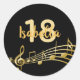 Sticker Rond Notes de musique or 18e anniversaire sur élégant n