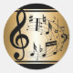 Sticker Rond Notes musicales Noir et Or arrière - plan