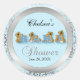 Sticker Rond Nounours Blue & Silver Damask | BABY SHOWER