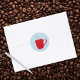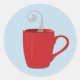 Bright rouge tasse de café remplie avec votre café ou thé favori. Utilisez comme enveloppe ou autocollant sur vos articles et cadeaux préférés. Les couleurs sont le rouge, le gris et le bleu.