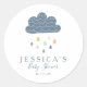 Nuages mignons et gouttes de pluie personnalisés dans Sticker Baby shower bleu