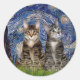 Sticker Rond Nuit étoilée - Deux chats en tigre Tabby