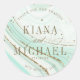 Vous obtenez à la fois le glamour et l'impact élevé avec cet ensemble de mariage de coordination qui comprend des motifs d'agate abstraits, texturés avec des faux cristaux et des reflets dans un film d'or scintillant. Des combinaisons de couleurs éclatantes, comme cette suite avec sa palette pastel douce du vert menthe au bleu turquoise, créent l'arrière - plan pour les pièces de cet ensemble coordonné. Cet autocollant de faveur de mariage contient tous les éléments ci-dessus ainsi qu'un modèle pour ajouter facilement vos noms et un message de remerciement spécial. Affichez le lien de collection sur cette page pour voir tous les éléments correspondants dans cette belle conception ou recherchez ID827 pour voir des choix de couleurs supplémentaires.