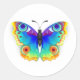Arc-en-ciel, réaliste, artistiquement dessiné, couleurs vives papillon paon avec ailes texturées détaillées sur arrière - plan blanc. Papillon arc-en-ciel.