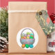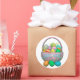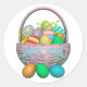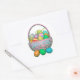 Des autocollants ronds avec ma conception d'oeufs peints de Pâques dans un joli panier qui dit "Bonne Pâques".