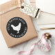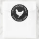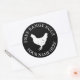 Sticker classique rond à oeufs frais à la ferme de gamme libre silhouette de poulet. Design vintage avec silhouette d'animal de ferme et modèle de typographie rustique. Ajoutez votre propre nom d'entreprise, votre propriété ou votre devis personnalisé. Idéal pour vendre des oeufs, de la viande de volaille, des entreprises agricoles, un restaurant, un marché, une épicerie locale et plus encore. Couleurs noir et blanc personnalisables.