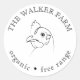 Améliorez votre ferme familiale ou familiale avec ce bel autocollant vintage en carton d'oeuf avec une illustration rustique de poulet noir et blanc avec coeur, et une police rustique assortie avec toutes vos informations personnalisées.