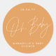 Sticker Rond Oh Baby shower script moderne orange élégant