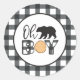 Sticker Rond Oh Boy Bear noir Buffalo Plaid Baby shower