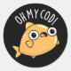 Sticker Rond Oh My Cod Funny Fish Pun Dark BG