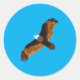 Sticker rond classique d'Oiseau d'aigle volant. Beau oiseau d'aigle à tête blanche dans le vectoriel du ciel bleu illustration pour les amateurs d'aigle. L'aigle à tête blanche est l'un des plus grands oiseaux d'Amérique du Nord. Le nom latin "Haliaeetus leucocephalus" signifie "aigle à tête blanche". Le nom de l'aigle à tête blanche provient d'une signification plus ancienne du mot "tête blanche".