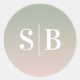 Sticker Rond Ombre feuille monogramme vert et Mariage rose clai
