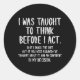 Sticker Rond On M'A Appris À Réfléchir Avant D'Agir Sarcasme