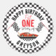 Sticker Rond One Fast Race Car Boy 1ère fête d'anniversaire