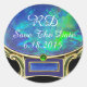 Sticker Rond OPAL VERT BLEU, JEWEL OR Enregistrer la date Monog