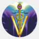 Sticker Rond OR CADUCEUS SYMBOLE VÉTÉRINAIRE Bleu pourpre
