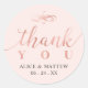 Cet autocollant de remerciement de mariage simple et élégant présente une belle typographie rose en or sur un arrière - plan rose vif. Objets correspondants disponibles dans ma collection "Classic Elegant Wedding". Conçu par BaraBomWedding.