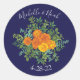 Sticker Rond Orange & Marine Blue Peony & Rose Floral Mariage