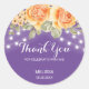 Elégant anniversaire floral merci autocollant caractéristiques étonnante aquarelle orange bouquet rose avec des lampes à cordes sur fond violet.