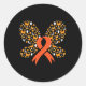Sticker Rond Orange Ruban Papillon Leucémie Sensibilisation Sur