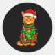 Sticker Rond Orange Tabby Cat Christmas Lights Funny Santa Holi