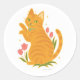 Sticker Rond Orange Tabby with Tulips