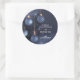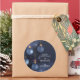 Beau sapin de Noël bleu et des autocollants ronds ornementés portent votre nom et Joyeux Noël et Bonne Année dans des lettres chic. CORRESPONDANCE d'objets dans notre collection.