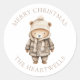 Sticker Rond Ours d'aquarelle mignonne Joyeux Noël personnalisé