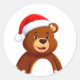 Sticker Rond Ours en caricature mignon à Santa Hat avec arbre d