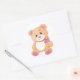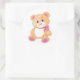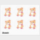 Sticker Rond Ours en peluche mignon avec ruban rose