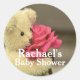 Sticker Rond Ours En Teddy Doux Avec Baby shower Rose