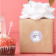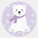 Autocollant rond classique Ours polaire de fille mignonne flocon de neige violet en hiver
