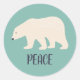 Scellez vos cartes de Noël avec style avec ces autocollants ronds qui font de grands scellés d'enveloppe. Ils présentent une illustration simple d'un ours polaire en crème ou blanc d'ivoire contre un arrière - plan turquoise glacé avec "Peace" ou votre propre message épelé dans un amusant lettrage bleu marine.