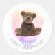 Sticker Rond Ours sauvage rose premier anniversaire mignonne mo